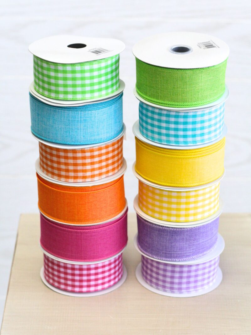 12 Rolls # 9 Bright Gingham/Solid Faux Burlap Ribbon (1.5″ x 10 Yds)
