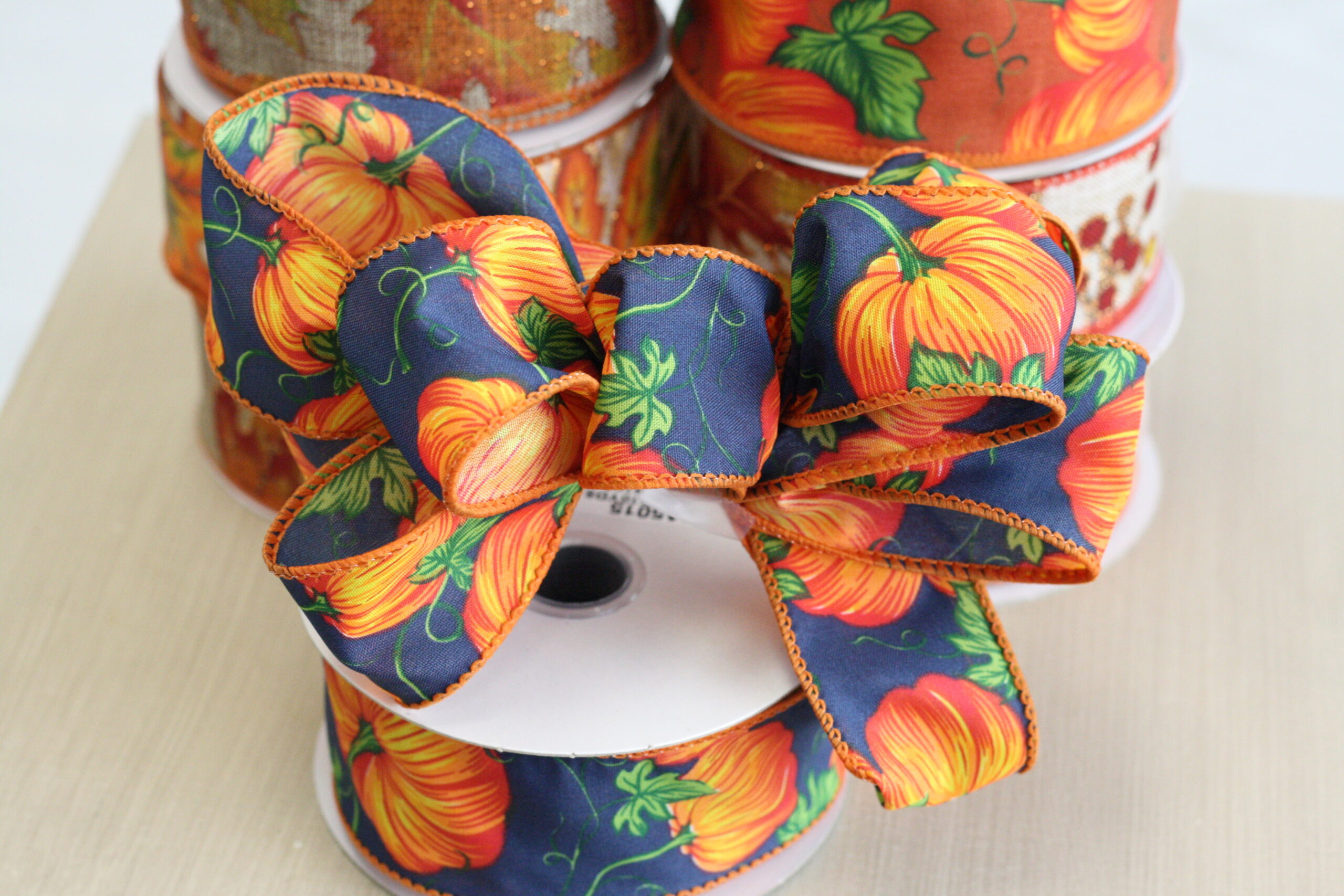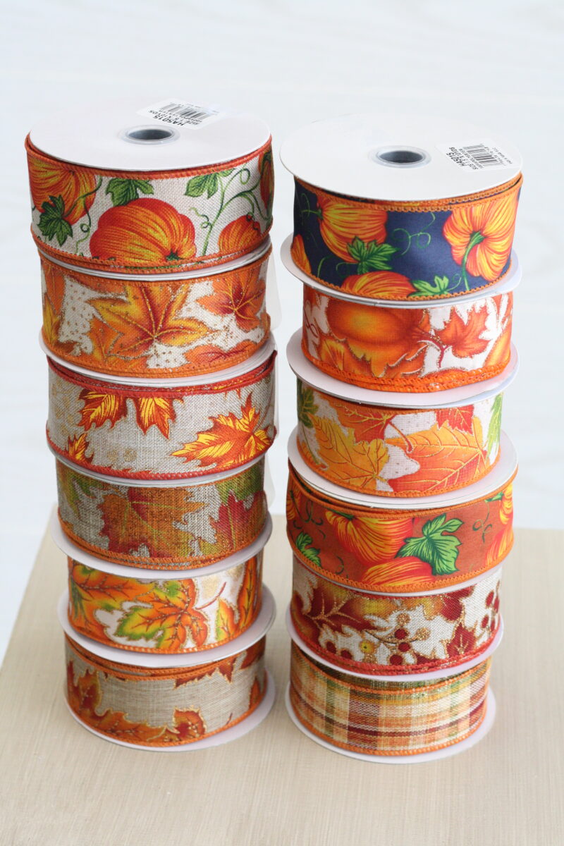 24 Rolls Assorted Fall Ribbon. Each roll is double-wired and measures 1.5″ x 10 Yards. (30 Feet)