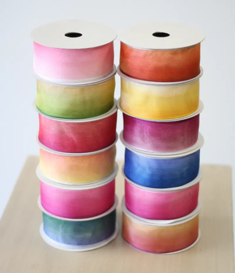 24 Rolls # 9 Double-Wired Chiffon Ombre Ribbon. (1.5″ x 10 Yards)
