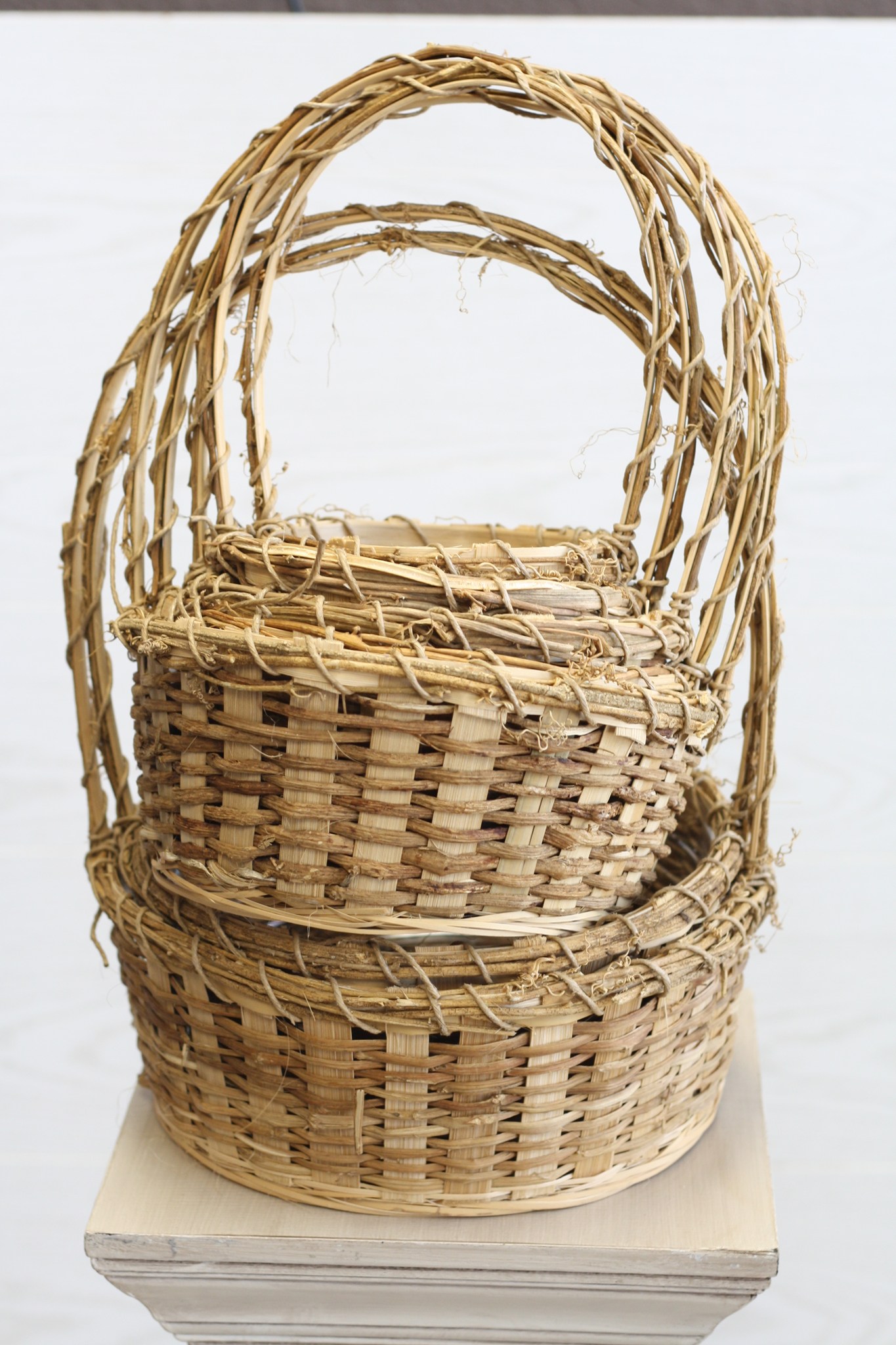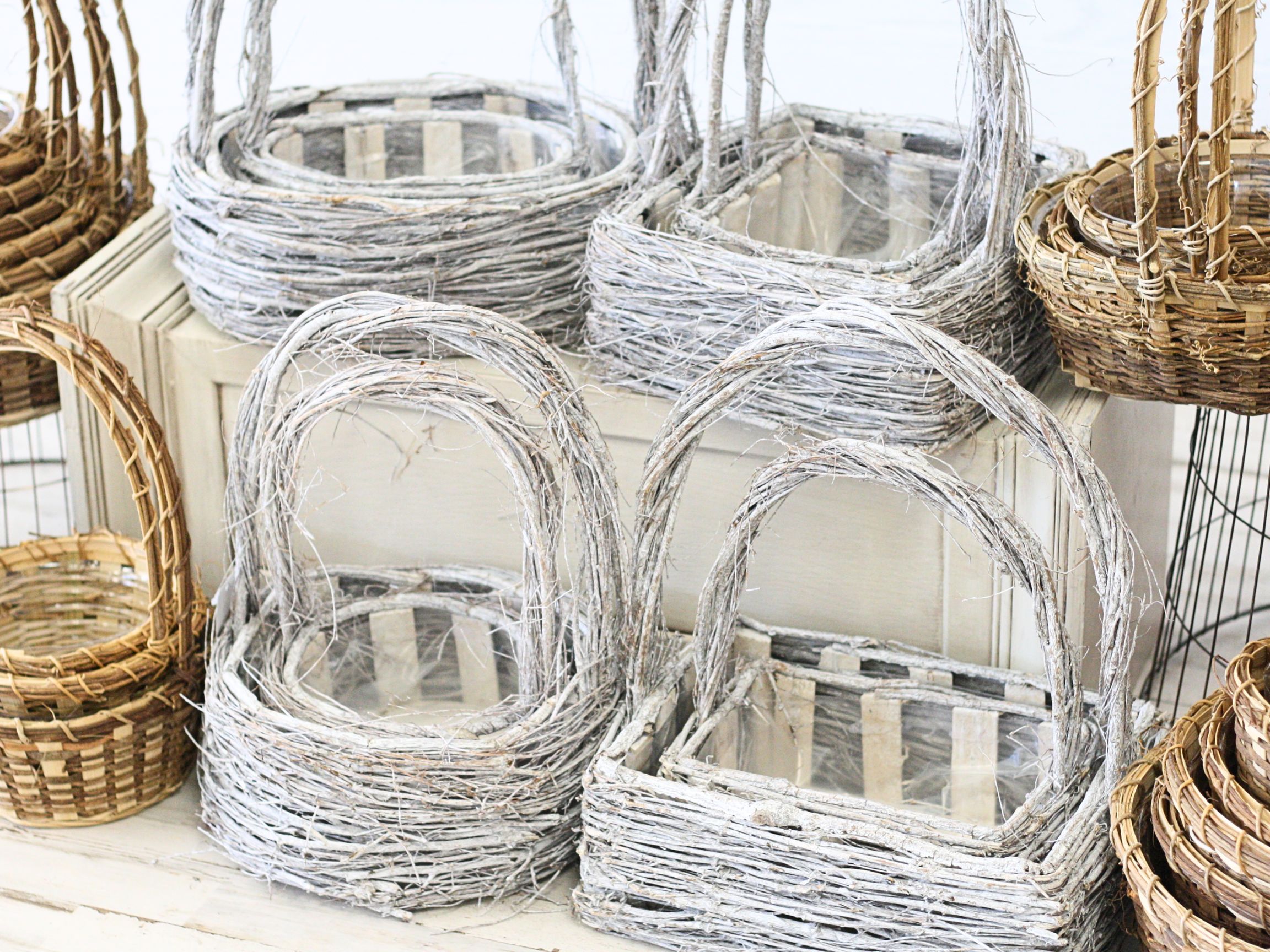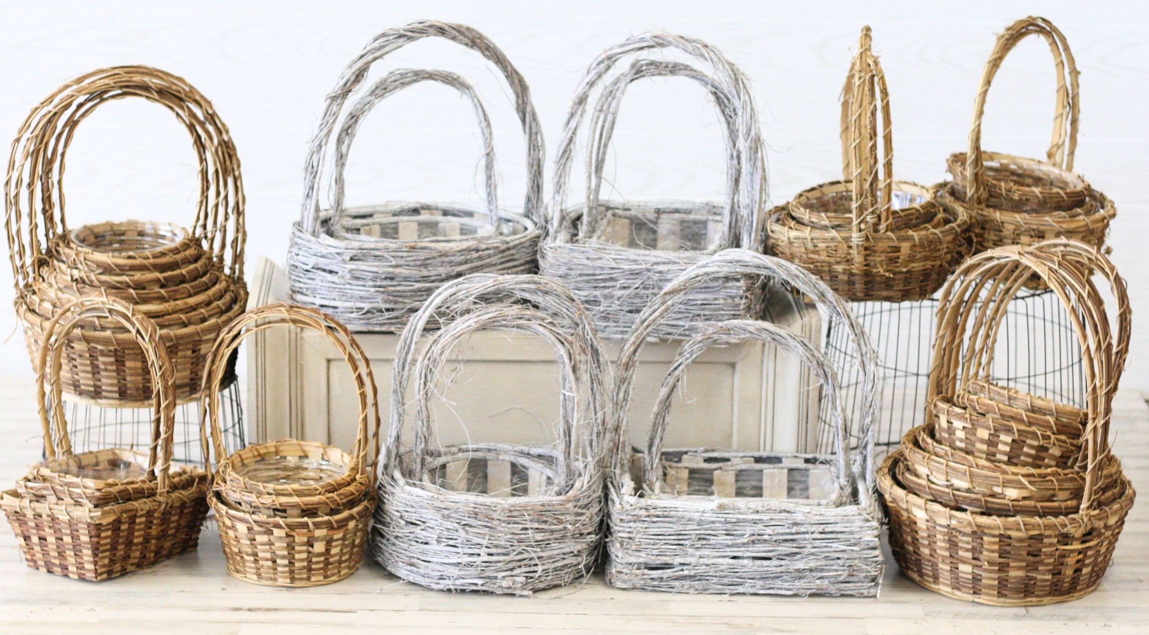 34 Piece Vine Basket Assortment. This package includes 8 Piece Grapevine Baskets (4 sets of two) with a sturdy wooden crate structured in to each basket. Also, a 26 Piece Curly Vine Basket (BEST-SELLER)